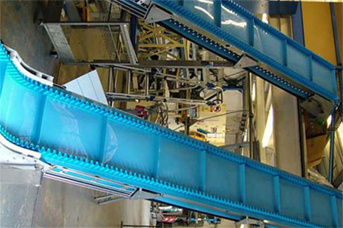 大傾角皮帶機放入擋邊帶式輸送機為一般用途的散狀物料連續輸送設備,大傾角皮帶機采用的是具有波狀擋邊和橫隔板的輸送帶。因此,適用于大傾角輸送。